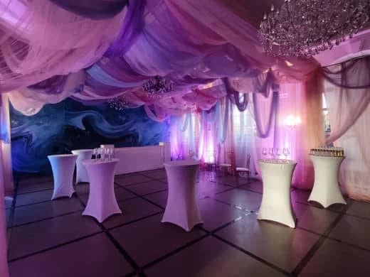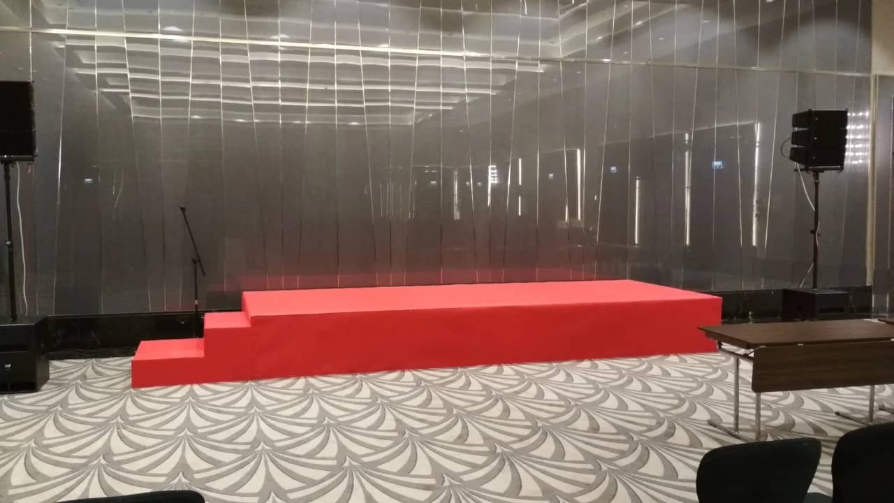 Застилка ковролином, изготовление юбки сцены, задника сцены